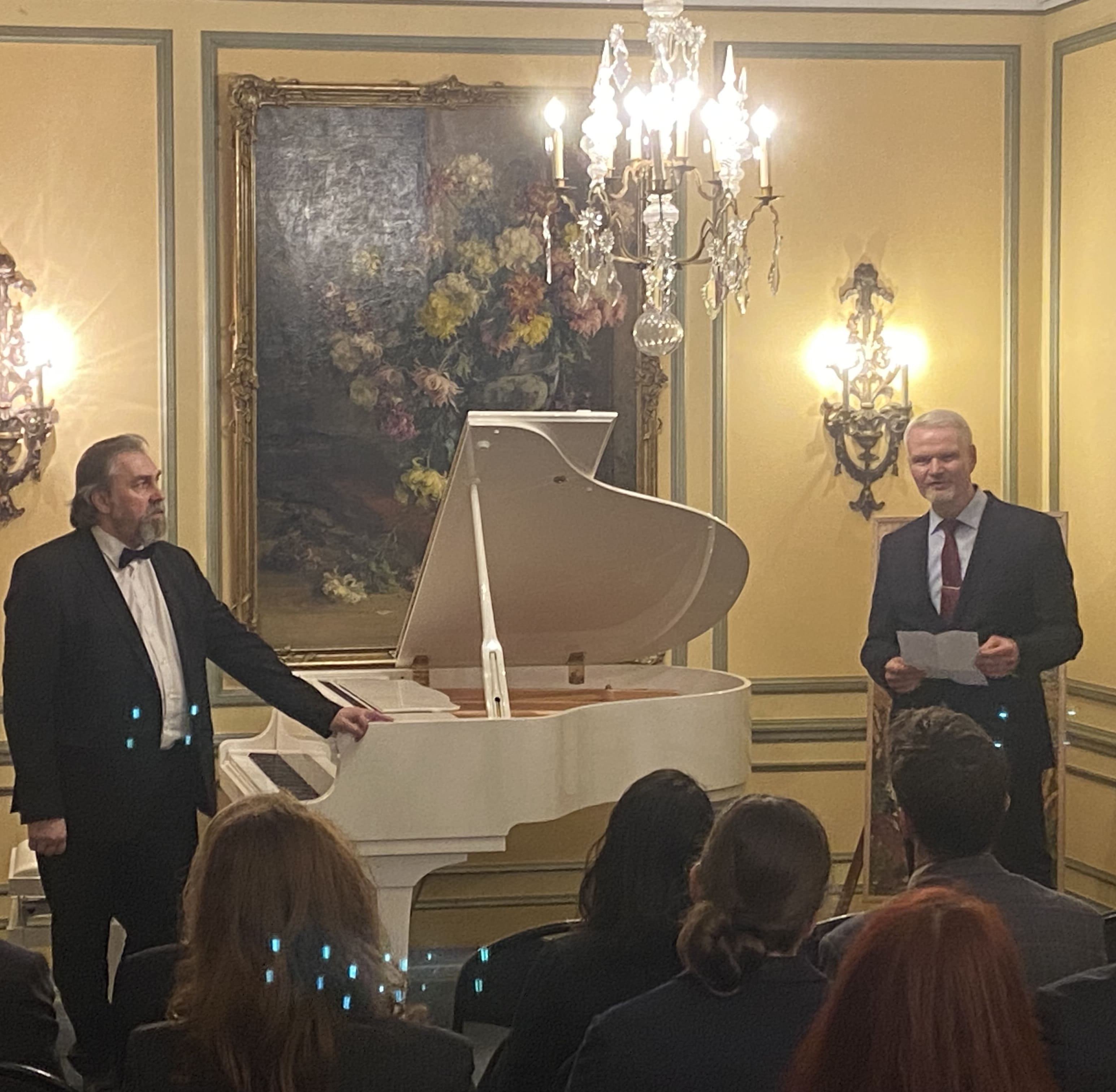 В приветственном слове временный поверенный отметил универсальность языка искусства и музыки в объединении людей. Заявил, что мероприятие ознаменовывает единение белорусского народа, сохранение исторической памяти, связи с Родиной. Белорусов, где бы они ни находились, объединяет любовь к родной стране, ее культуре, традиционная толерантность к разным нациям и религиям, приверженность мирному сосуществованию народов. Акцентировал, что идея единства, взаимопонимания и справедливости является напоминанием о том, что в условиях текущей мировой турбулентности только через взаимное уважение и сотрудничество можно достичь устойчивого развития, мира и процветания для всех.